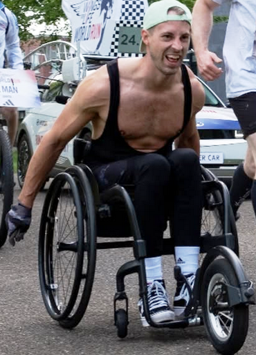 had door zijn val een dwarslaesie opgelopen, zesde borstwervel
