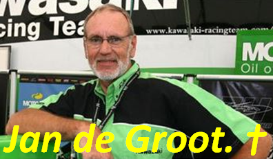Blue Stratos Kawasaki Team 1984 Team Manager en initiatiefnemer Jan Schaeffer (†) Met ondersteuning van Cees en Annette van de Weijde