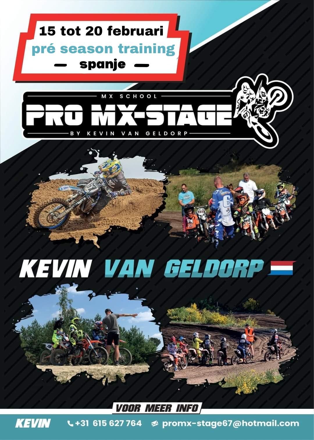 Hallo allemaal, van 22 december t.e.m. 2 januari organiseert Pro mx-stage een winter stage te Spanje. ![]() Wat: 9 daagse trainingsstage. (Overnachting op camping in bungalow of camper/caravan) Waar: Cambrils spanje. Trainer: Kevin van Geldorp. Voor: beginners, gevorderde en wedstrijd rijders. Over de circuits: we gaan naar verschillende prachtige circuits, afgehuurd en geprepareerde circuits waar je veel kunt bij leren, perfect om je techniek en snelheid bij te schaven. Info: Kevin van Geldorp: +31 6 156 277 64 promx-stage67@hotmail.com ![]() ![]() ![]()