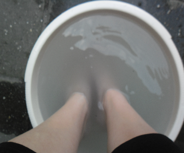 Of ga met je voeten in een bak of emmer koud water